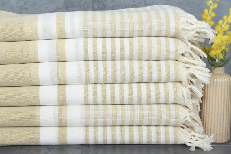 Comprising 100% organic Turkish cotton, the towels and blankets are characterized by superior absorbency and durability. These products are pre-shrunk and exhibit a natural dyeing process, ensuring minimal shrinkage post-initial washes. Each towel measures 40x71 inches or 100x180 centimeters, weighs 200 grams, with a hand-weaving tolerance of 1-2.5cm.
