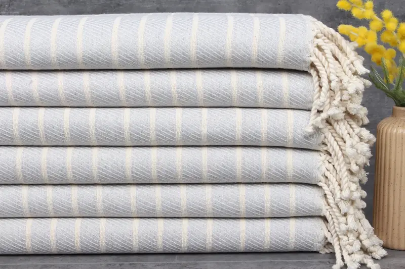 These beach towels are characterized by their exceptional absorbency and durability, crafted from 100% organic Turkish cotton. Ensuring superior quality, the towels exhibit natural hues due to the use of natural dyes. They are lightweight at 425 grams and measure 40x71 inches or 100x180 centimeters. Each towel, resulting from meticulous hand-weaving, allows for slight variations of 1-2.5 cm in dimensions.