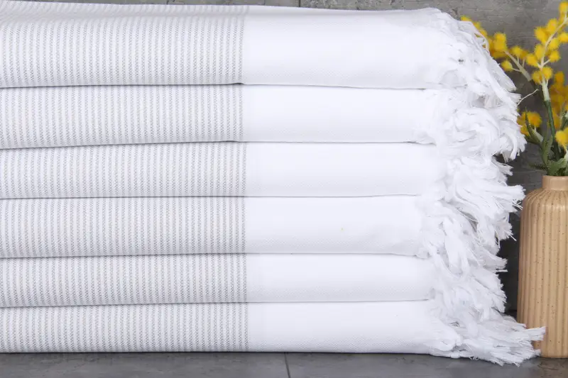 Turkish towels exhibit a fiber composition characterized by 100% organic Turkish cotton, ensuring superior absorbency. The towels are meticulously woven on hand looms, resulting in towels with dimensions of 40x71 inches or 100x180 centimeters, and a weight of 290 grams. Each towel is pre-shrunk and can tolerate a weaving variance of 1-2.5 centimeters.