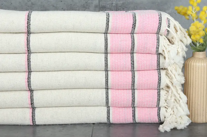 Turkish cotton towels, characterized by their natural dye colors and 100% organic material, provide exceptional absorbency and softness. These towels, weighing 430 grams, are sized at 36x71 inches or 90x180 centimeters, ensuring a versatile fit for various uses. Dimensions exhibit a hand-weaving tolerance of 1-2.5cm.