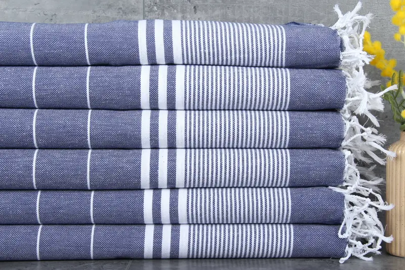 Turkish towels are characterized by their 100% organic Turkish cotton composition, ensuring high absorbency. Each towel, hand towel, or blanket is meticulously woven, resulting in dimensions of 24x40 inches or 60x100 centimeters. Tolerances in hand-weaving may vary by 1-2.5 cm, delivering a product with artisanal precision.