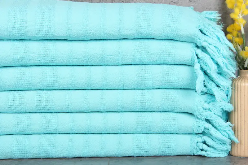 Made from 100% organic Turkish cotton, these towels are renowned for their soft texture and superior absorbency, ensuring optimal water retention with each wash. Characterized by their dimensions of 67x36 inches (170x90 centimeters) and a weight of 300 grams, these towels exhibit slight hand-weaving tolerances of 1-2.5 centimeters.