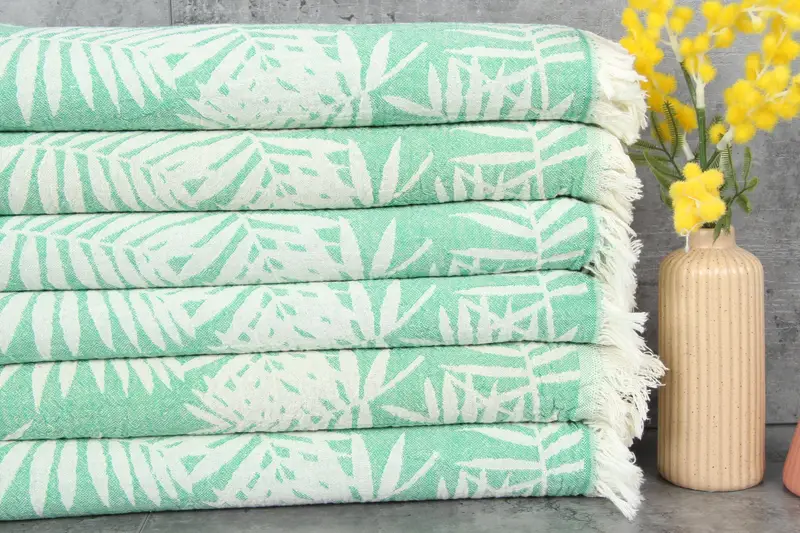 Characterized by high absorbency, the Turkish towels are crafted from 100% organic Turkish cotton, ensuring natural dyeing and superior water absorption. The towels weigh 220 grams per square meter (GSM) and measure 40x70 inches (100x180 centimeters). Hand-weaving tolerances result in size variations of 1-2.5 cm.
