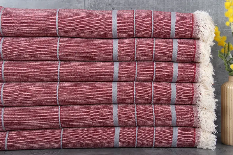 The towels are fabricated from 100% organic Turkish cotton, ensuring a natural and eco-friendly product. Characterized by their high absorbency, these towels absorb more water with each wash, resulting in increased softness and durability. Measuring 40x71 inches (100x180 centimeters) and weighing 460 grams, they are meticulously hand-woven with tolerances of 1-2.5 cm.