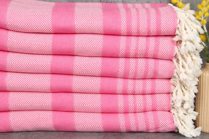 Constructed from 100% organic Turkish cotton, these towels exhibit superior absorbency and softness. Resulting in a weight of 400 grams, they are ideal for various applications due to their dimensions of 38x67 inches or 95x170 centimeters. Tolerances due to hand-weaving are within 1-2.5 centimeters.