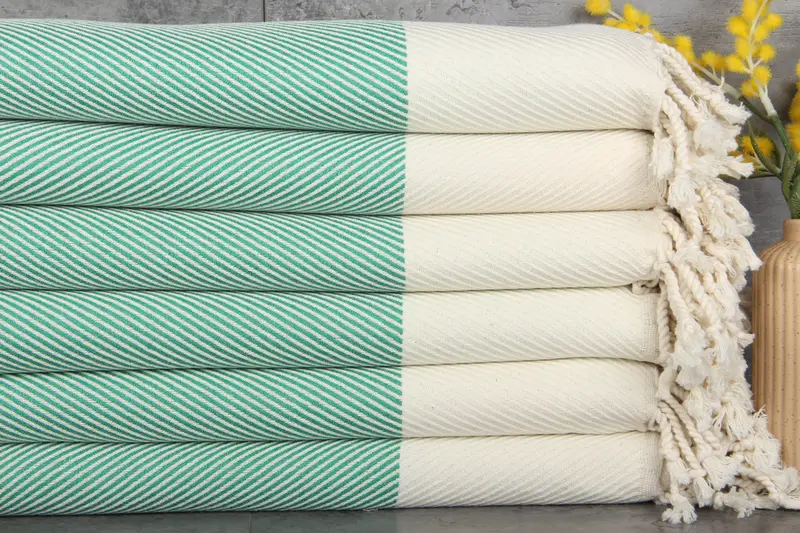 Turkish cotton towels ensure superior absorbency and durability, characterized by their 100% organic composition and natural dyeing process. Measuring 40x71 inches (100x180 centimeters) and weighing 430 grams, these towels exhibit slight hand-weaving tolerances of 1-2.5 centimeters. Embroidery customization is available, allowing for personalization, and the towels are pre-shrunk, thus maintaining their dimensions post-wash. Shipment from the US warehouse for US customers guarantees expedited delivery, while international orders from Turkey pro...