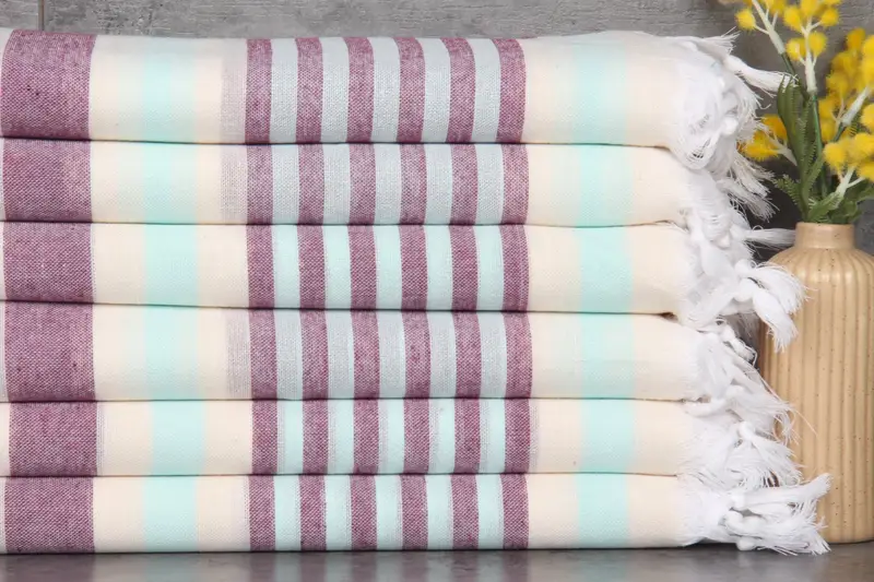 Produced from 100% organic Turkish cotton, these towels ensure superior absorbency. Resulting in a weight of 175 grams and a size of 40x67 inches or 100x170 centimeters, they provide a luxurious texture. Characterized by a tolerance of 1-2.5 cm in hand-weaving, each towel exhibits a unique artisanal touch.