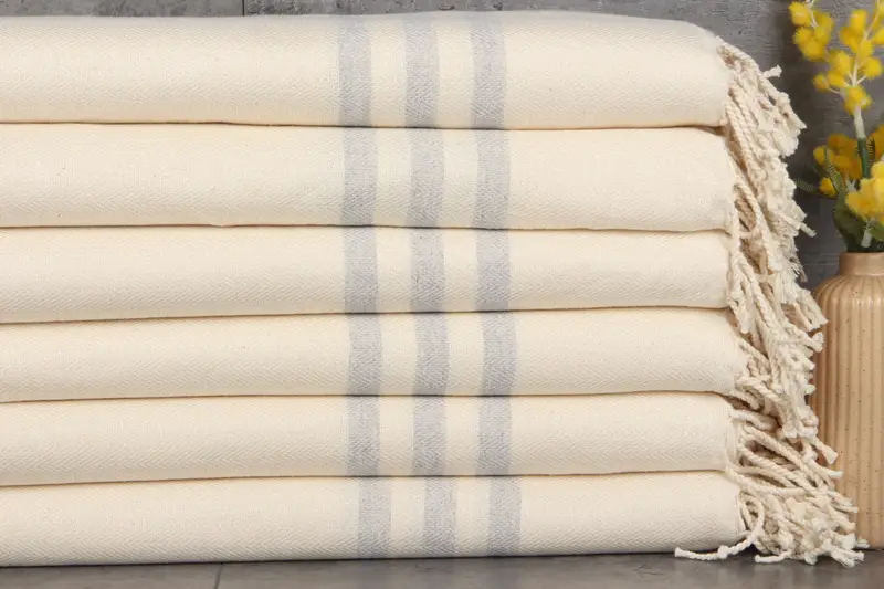 Organic Turkish cotton ensures a naturally soft texture, made from 100% organic cotton and naturally dyed. Resulting in superior absorbency, each towel weighs 250 grams and measures 40x71 inches (100x180 centimeters). Hand-woven with precision, allowing a tolerance of 1-2.5cm in dimensions.