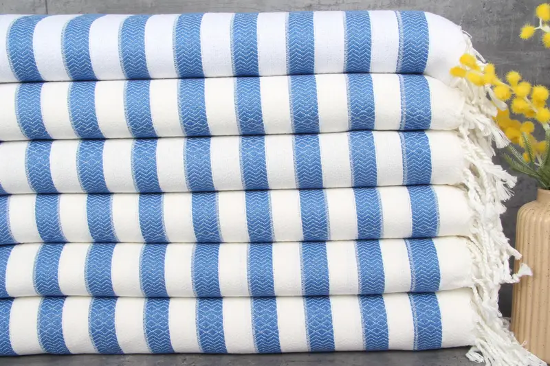 Organic Turkish cotton fibers are used in the towels and blankets, ensuring high absorbency and durability. These products, weighing 340 grams, maintain a standard size of 36x71 inches (90x180 centimeters), with a tolerance of 1-2.5 cm in hand-weaving processes. Embroidery customization is available, and the items are pre-shrunk, ready for immediate use. Shipping options include expedited delivery via DHL and FedEx, with free shipping for orders over $35. For international orders, an additional 2 days may be required for custom embroidery.