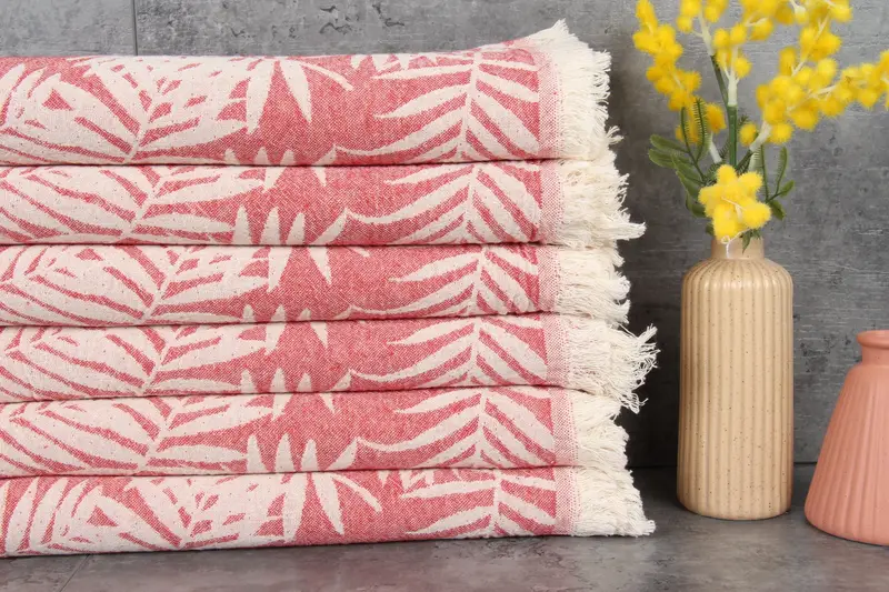 The Turkish Towels are crafted from 100% organic Turkish cotton, ensuring a natural dye process and high-quality texture. Characterized by a GSM of 220 grams/sq. meters, these towels maintain a consistent weight even after multiple washes. Their dimensions are standardized at 100x180 centimeters, providing versatile usability.