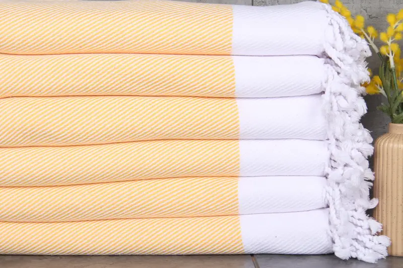 Turkish towels are characterized by their fiber composition, crafted from 100% organic Turkish cotton, ensuring superior absorbency and durability. Resulting in a weight of 400 grams, these towels are hand-woven with attention to detail, featuring a tolerance of 1-2.5cm. Dimensions are specified as 40x71 inches or 100x180 centimeters.
