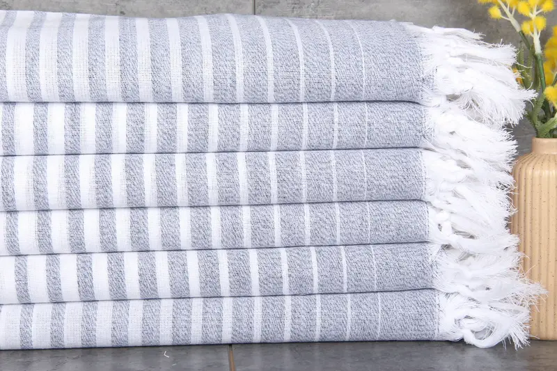 Turkish towels are characterized by their fiber composition, consisting of 100% organic Turkish cotton, naturally dyed, ensuring a sustainable and hypoallergenic product. Weighing 240 grams, these towels measure 40x69 inches (100x175 centimeters), with hand-weaving tolerances ranging from 1-2.5 cm. Each wash results in increased absorbency, amplifying their utility.