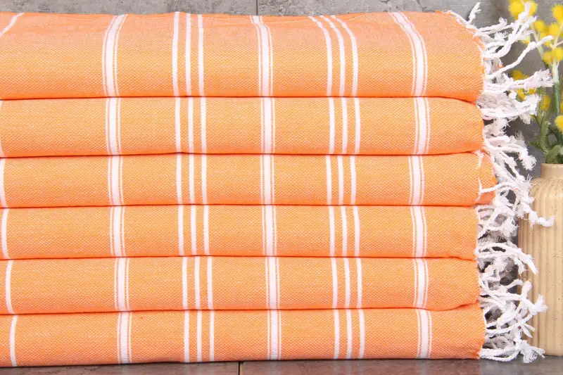 Produced from 100% organic Turkish cotton, the Turkish towels ensure a natural fiber composition, characterized by high absorbency and durability. Each piece is meticulously woven, resulting in towels that are 24x40 inches or 60x100 centimeters, weighing 100 grams. Tolerances due to hand-weaving techniques may vary by 1-2.5 centimeters.