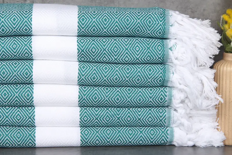 Characterized by %100 organic Turkish cotton, these towels feature natural dyes, ensuring durability and softness. Ensuring superior absorbency, the 40x71 inches/100x180 centimeters towels weigh 360 grams, with weaving tolerances of 1-2.5cm. Hand-woven with precision, these towels are pre-shrunk, maintaining their size after washes. Custom embroidery services are available, adding 2 days to the shipping timeline. Orders over 35 USD receive free shipping, with worldwide delivery options ranging from 2 to 6 days.
