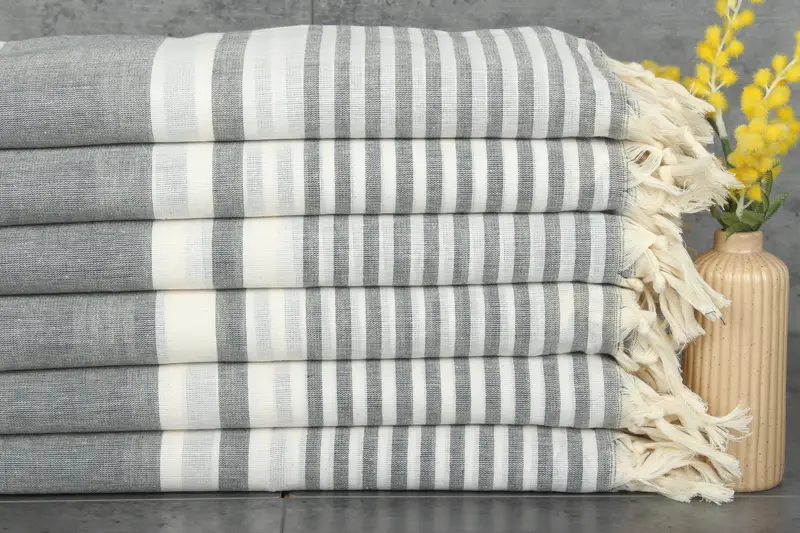 Turkish towels, renowned for their superior quality, are meticulously crafted from 100% organic Turkish cotton, ensuring durability and natural dye retention. Characterized by their high absorbency, these towels are engineered to become more absorbent with each wash, resulting in enhanced performance over time. Specifications include a dimension of 40x71 inches or 100x180 centimeters and a weight of 200 grams, allowing for a luxurious feel. Hand-weaving tolerances permit slight variations of up to 2.5cm.