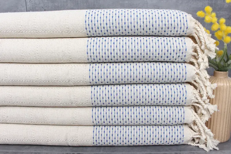 Turkish towels, characterized by their superior absorbency, are crafted from 100% organic Turkish cotton, ensuring optimal water absorption. Each piece, sized 20x40 inches or 50x100 centimeters, weighs 120 grams and is produced with a tolerance of 1-2.5 cm due to hand-weaving techniques. Customization options include embroidery, with expedited shipping available upon request. Towels are pre-shrunk, and shipping logistics are streamlined with estimated delivery times ranging from 2 to 6 days depending on the destination.