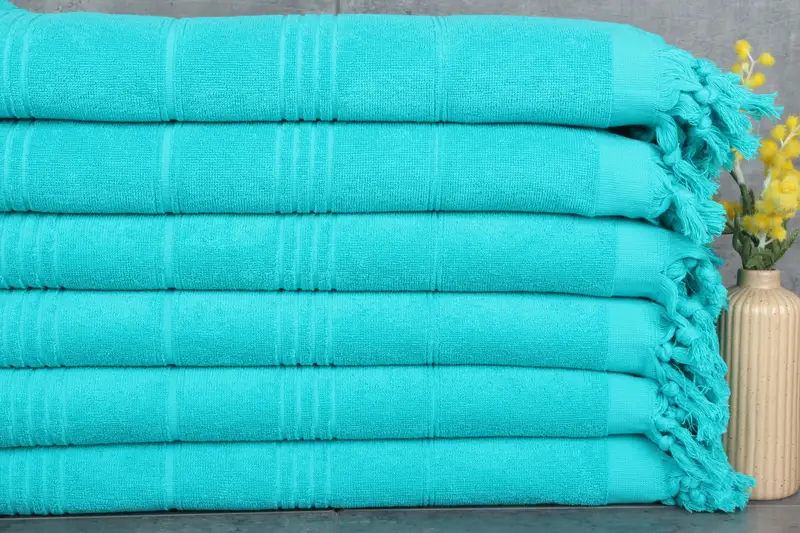Ensuring superior absorbency, Turkish towels are crafted from 100% organic Turkish cotton, naturally dyed for vibrant hues. Resulting in towels that weigh 420 grams and span dimensions of 70x36 inches/90x180 centimeters, hand-woven with tolerances of 1-2.5cm. Characterized by pre-shrunk status post initial washes, these towels enhance absorbency with every use.