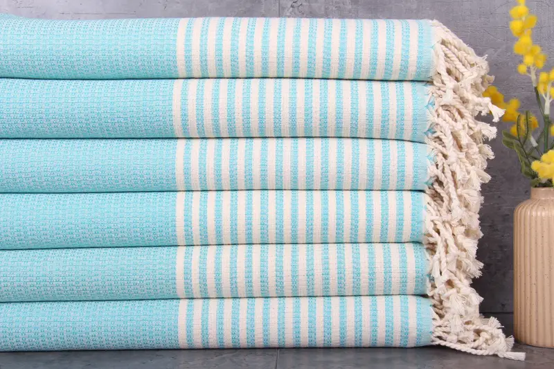 Ensuring durability, Turkish towels are characterized by a fiber composition of 100% organic Turkish cotton, meticulously natural dyed. Resulting in superior absorbency, the towels measure 40x67 inches (100x170 centimeters) and weigh 390 grams, with a hand-weaving tolerance of 1-2.5 centimeters. Pre-shrunk status, customized embroidery, and shipping logistics are available within 2-6 days, depending on region, with free shipping over $35. Orders containing custom designs require a minimum of 500-1000 pieces or loom change costs. Wholesale disco...