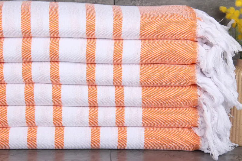 Constructed from 100% organic Turkish cotton, ensuring superior absorbency and durability. The Turkish towels have dimensions of 36 x 67 inches (90 x 170 centimeters) with a weight of 380 grams, providing a balance of lightweight portability and robust utility. Each piece features meticulous hand-weaving with tolerances of 1-2.5 cm, ensuring consistent quality.