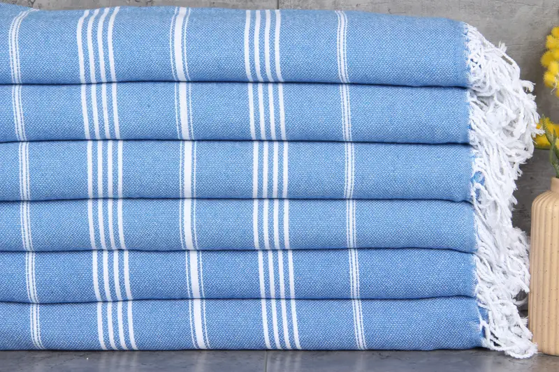 Turkish cotton towels, blankets, and hand towels are characterized by their high-quality, 100% organic Turkish cotton, ensuring natural dyeing and optimal absorbency. Resulting in a soft and stylish product, these towels and blankets weigh 290 grams and measure 40x71 inches (100x180 centimeters). Hand-weaving results in tolerances of 1-2.5 cm in dimensions.