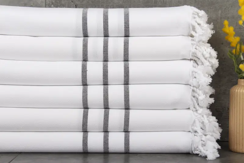 These towels are characterized by their organic cotton composition, providing exceptional absorbency due to natural dyeing processes. Resulting in towels with a weight of 420 grams, they are 40x71 inches or 100x180 centimeters, ensuring a balance between large size and manageable weight. Crafted through hand-weaving methods, the dimensions can vary by 1-2.5cm.