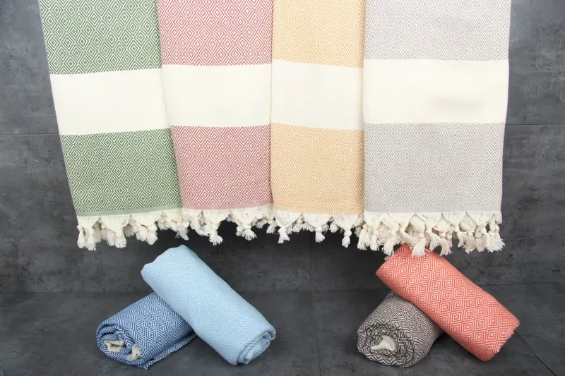 Characterized by their use of 100% organic Turkish cotton, the towels ensure superior absorbency and durability. Each towel, measuring 40x70 inches or 100x180 centimeters, weighs 220 grams per square meter, providing both lightweight and robust qualities. Tolerances in hand-weaving result in slight size variations of 1-2.5 cm.