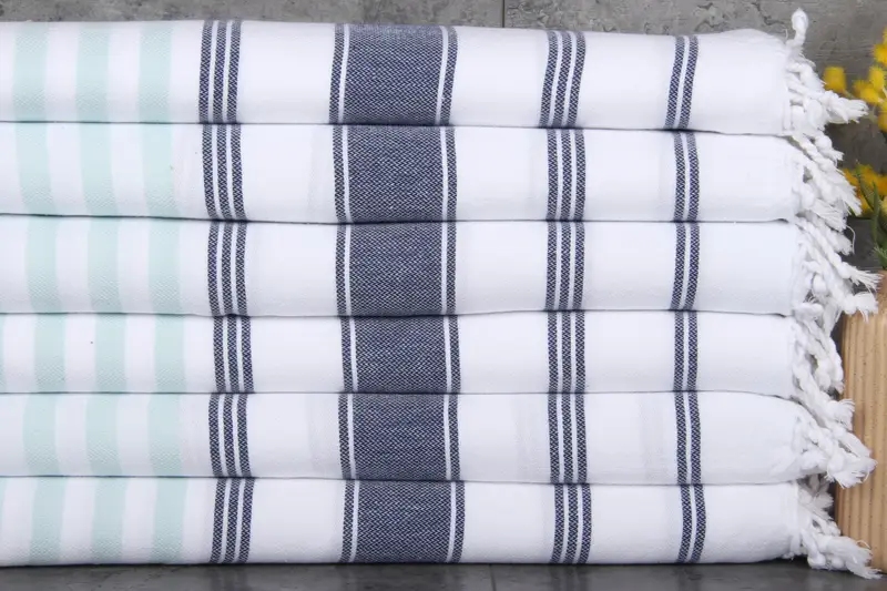 These towels and blankets are made from 100% organic Turkish cotton, ensuring natural dyeing and superior quality. Each piece is hand-woven, resulting in towels that are approximately 40x71 inches or 100x180 centimeters in size, with a weight tolerance of 1-2.5 cm and a weight of 300 grams per square meter. Their absorbent properties improve with each wash, making them more effective over time.