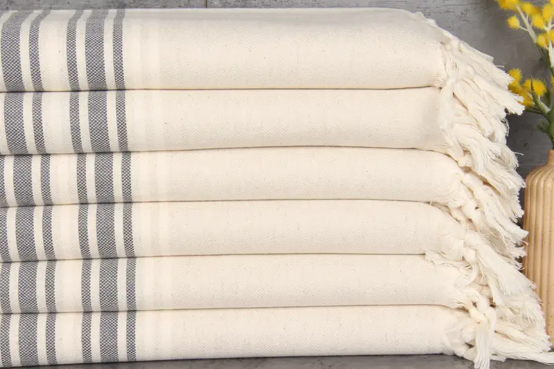 Turkish cotton, characterized by natural dyes, ensures high absorbency and softness. Measuring 38x71 inches (95x180 centimeters) and weighing 410 grams, these towels are meticulously hand-woven with tolerances between 1-2.5 cm. Custom embroidery capabilities are available, allowing for tailored designs within production capacity. Pre-shrunk to prevent shrinkage after washes, these towels come with shipping options that ensure swift delivery. US orders fulfill from a domestic warehouse, while international orders ship from Turkey. Free shipping ...