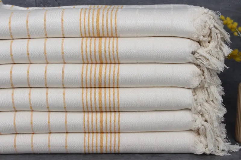 Organic Turkish cotton characterizes these towels, ensuring premium fiber composition and enhanced absorbency. Weighing 370 grams, the towels measure 40x71 inches or 100x180 centimeters, featuring hand-weaving tolerances of 1-2.5cm. Custom embroidery is available, with additional two days for personalization and free shipping for orders over 35 USD. Towels are pre-shrunk, washing instructions require separation for the first 2-3 washes, and can be dried using low cycles or air-dried for longevity. Orders are shipped within the same day with est...