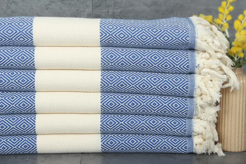 Turkish towels and blankets are characterized by their 100% organic Turkish cotton composition, resulting in enhanced absorbency and durability. Organic cotton fibers exhibit increased water absorption capabilities with each wash, contributing to longer towel life. Dimensionally, these towels measure 40x71 inches or 100x180 centimeters, with a weight of 420 grams, and hand-woven with tolerances of 1-2.5cm.