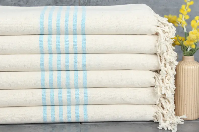 Organic Turkish cotton fibers, renowned for their exceptional absorbency and durability, characterize these towels. Ensuring superior water retention and quick-drying capabilities, each towel, blanket, or hand towel undergoes natural dyeing processes, resulting in vivid and enduring colors. These items, weighing 250 grams and measuring 67x36 inches (90x170 centimeters), exhibit slight variations of 1-2.5 centimeters due to hand-weaving tolerances.