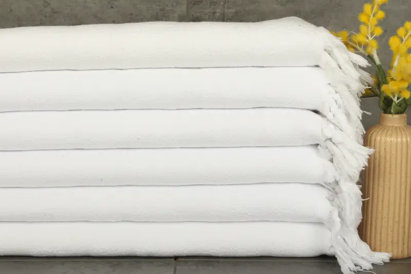Characterized by their softness and absorbency, these hand towels are crafted from 100% organic Turkish cotton. Weighing 110 grams and measuring 18x40 inches (45x100 centimeters), these towels ensure excellent water absorption, resulting in increased absorbency with each wash. Tolerance for hand-weaving is approximately 1-2.5 centimeters.