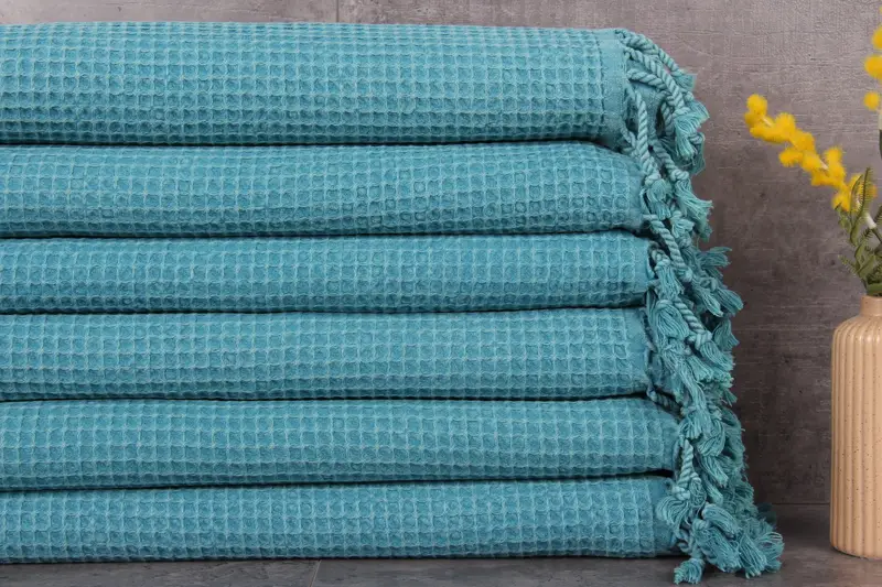 These towels and blankets are characterized by their use of 100% organic Turkish cotton, ensuring high-quality fiber composition and superior absorbency. Resulting in towels that increase in absorbency with each wash, these products are meticulously crafted with natural dyes. Organic cotton towels measure 36x67 inches (90x170 cm) and weigh 300 grams, with a tolerance of 1-2.5 cm due to hand-weaving.