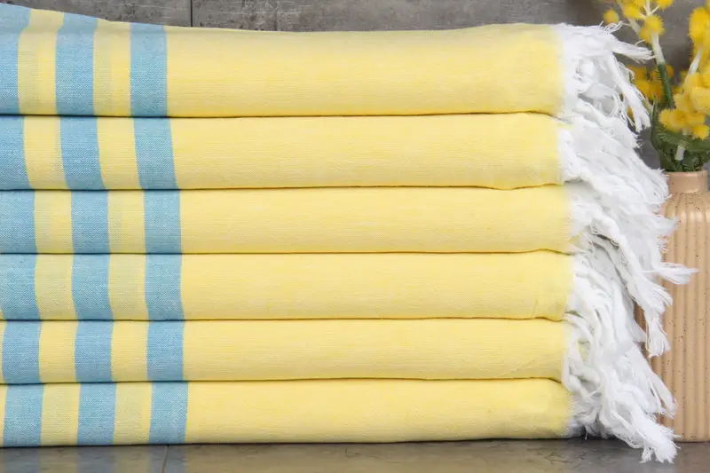 Turkish towels, renowned for their superior quality, are made from 100% organic Turkish cotton. Characterized by their natural dyeing process, these towels exhibit enhanced absorbency with each wash, ensuring extended usability. Each towel is hand-loomed, with tolerances of 1-2.5 cm, and weighs approximately 200 grams, offering durability and comfort.