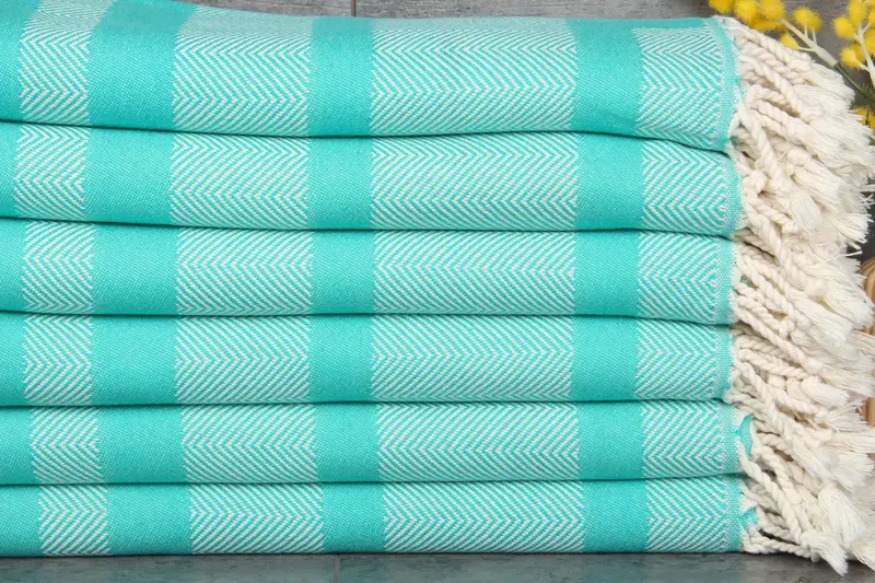 Each towel is characterized by a pre-shrunk nature and comes in natural-dyed colors, including Benetton Green with a Chevron pattern. Weighing 400 grams ...