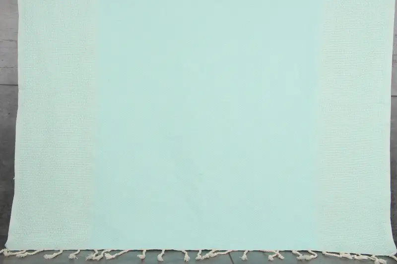 Ensuring high absorbency, the Turkish towels are crafted from 100% organic Turkish cotton, naturally dyed to retain their colors. Resulting in a product weight of 380 grams, these towels measure 38x63 inches or 95x160 centimeters. Tolerance in hand-weaving is maintained between 1-2.5 centimeters.