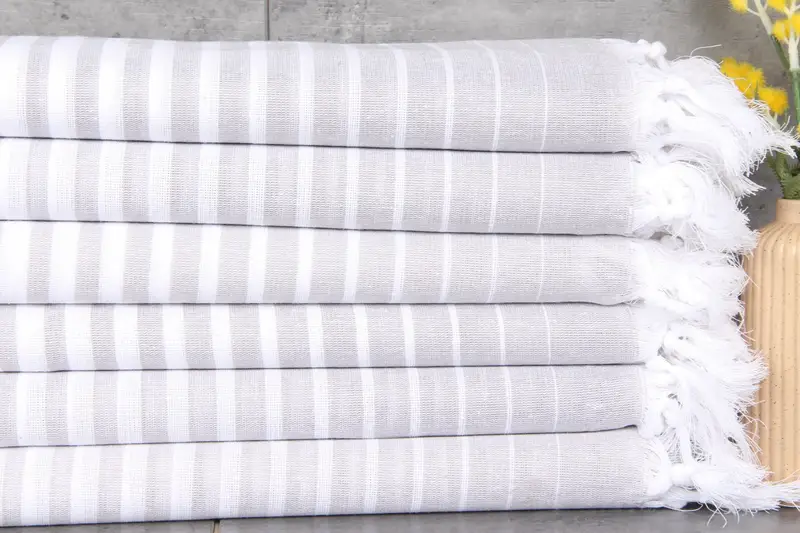 Turkish towels are renowned for their superior absorbency and durability, characterized by a blend of 100% organic Turkish cotton. Ensuring a natural finish, these towels are gently dyed without synthetic chemicals, highlighting their environmental stewardship. The towels, measuring 40x69 inches or 100x175 centimeters, exhibit a weight of 240 grams per square meter. Each product is hand-woven with tolerances within 1-2.5 cm, reflecting meticulous craftsmanship.