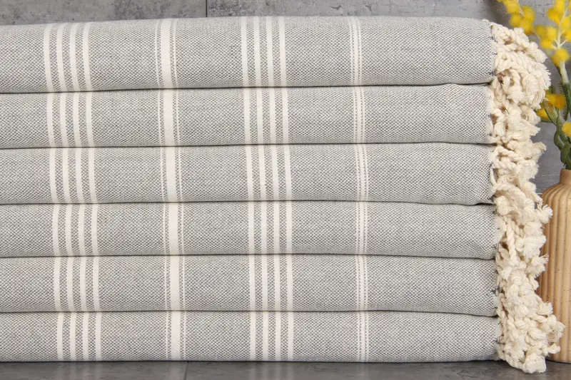 Turkish towels are distinguished by their 100% organic Turkish cotton composition, characterized by natural dyes. Ensuring superior absorbency, these towels exhibit enhanced water absorption with each wash, resulting in improved functionality over time. Each towel is hand-woven, measuring 40x67 inches or 100x170 centimeters, with a weight of 330 grams. Hand-weaving tolerances allow for minor size variations of 1-2.5 cm.
