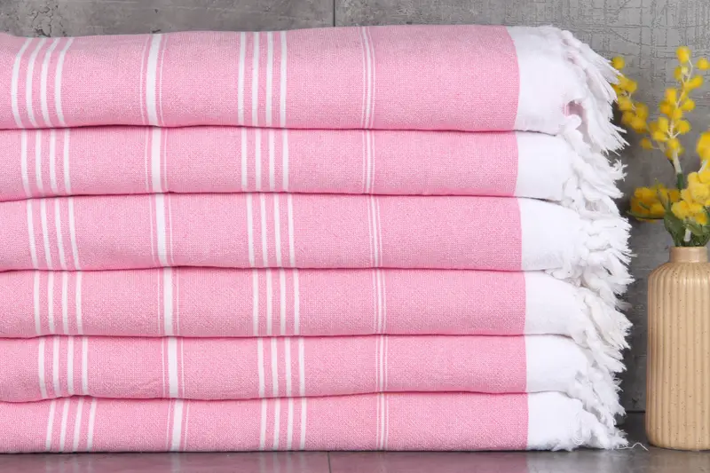 These towels and blankets are characterized by their organic cotton composition, ensuring a sustainable and eco-friendly product. Resulting in enhanced absorbency, the 100% organic Turkish cotton fibers allow the towels to become progressively more absorbent with each wash, providing a durable and high-quality end product. Each towel measures 36x71 inches or 90x180 centimeters, with a weight of 400 grams, allowing for precise hand-weaving within a tolerance of 1-2.5 cm.