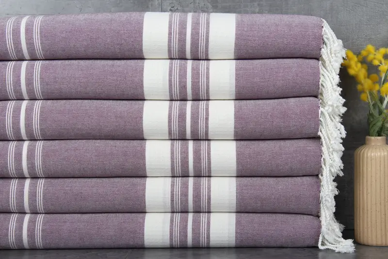 Made from 100% organic Turkish cotton, these towels are characterized by their natural dyeing process, ensuring vibrant colors. Turkish towels are recognized for their high absorbency, resulting in a weight of 250 grams and dimensions of 38x60 inches (95x150 centimeters). The artisanal hand-weaving process allows for tolerances of 1-2.5 cm.