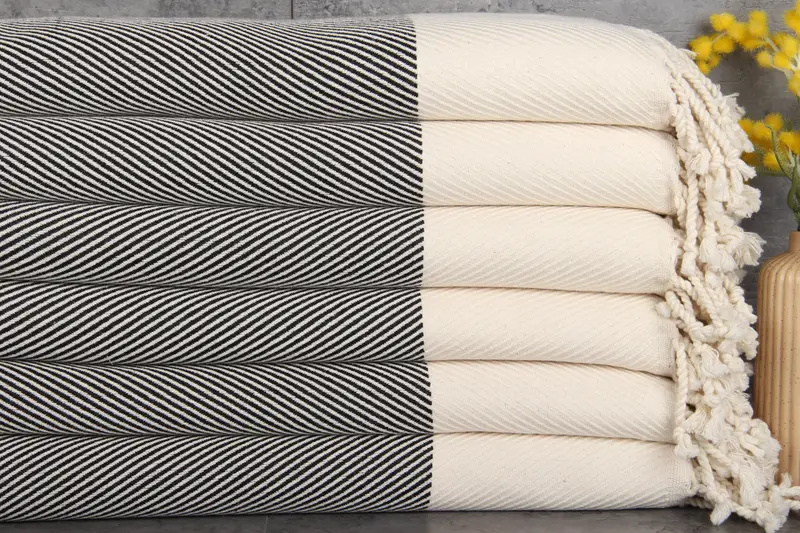 Characterized by superior fiber composition, the Turkish Towel is crafted from 100% organic Turkish cotton, renowned for its natural dyeing process and high absorbency. This ensures each towel, whether used as a beach towel, bath towel, or kitchen towel, absorbs water more efficiently after each wash, becoming increasingly absorbent over time. Measuring precisely 40x71 inches or 100x180 centimeters, these towels weigh 430 grams, and their dimensions are subject to hand-weaving tolerances of 1-2.5 cm.