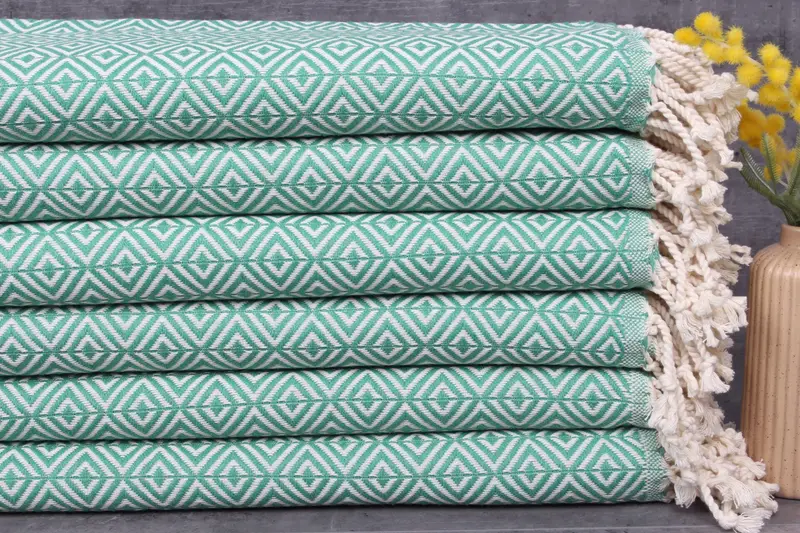 Comprised of 100% organic Turkish cotton, the towels are characterized by high absorbency, enhancing with each wash. Ensuring meticulous quality, the towels exhibit a weight of 420 grams and maintain a size of 40x67 inches or 100x170 centimeters. Hand-weaving tolerances are maintained between 1-2.5 centimeters.