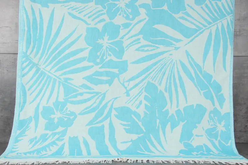 Made from 100% organic Turkish cotton, the Turkish towels are characterized by their natural dyeing process, ensuring vibrant and enduring colors. Each towel, measuring 40x71 inches (100x180 cm), boasts a weight of 320 grams, resulting in a substantial and luxurious feel. These products are hand-woven with a tolerance of 1-2.5 cm, providing a handcrafted touch.