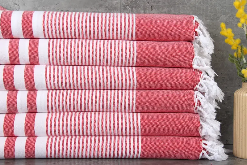 These towels are characterized by their composition, made from 100% organic Turkish cotton. Ensuring high absorbency, the towels are naturally dyed and exhibit increased water absorption with each wash. Dimensions are standardized at 40x71 inches or 100x180 centimeters with a weight of 340 grams. Hand-woven with care, any irregularities are within a tolerance of 1-2.5cm.
