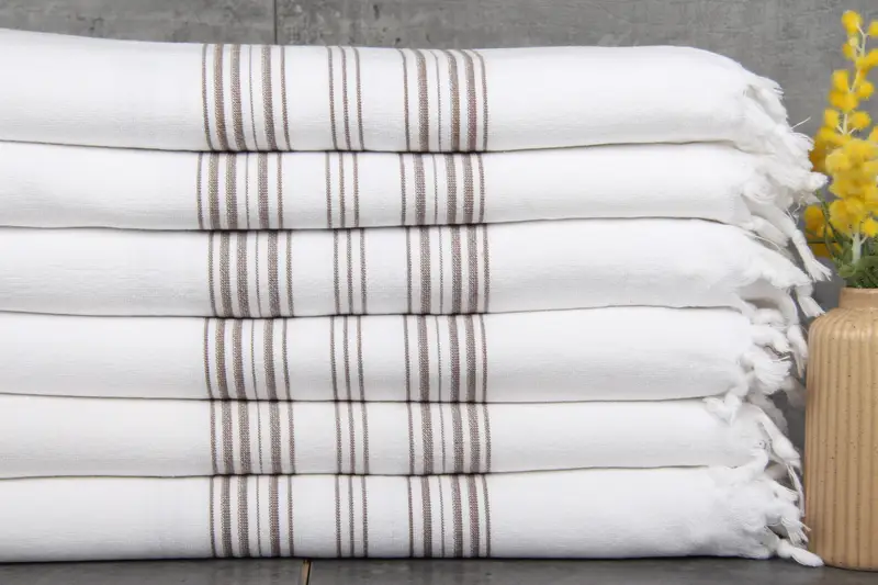 Characterized by a 100% organic Turkish cotton composition, the towels provide superior absorbency and durability. Turkish towels, measuring 40x71 inches or 100x180 centimeters, exhibit a weight of 400 grams, ensuring sturdiness and comfort. Hand-weaving tolerances allow for variations within 1-2.5 centimeters.