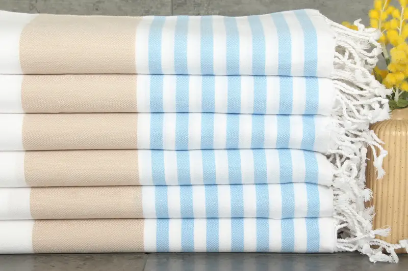 Characterized by 100% organic Turkish cotton, these towels ensure superior absorbency, improving with each wash. Resulting in a weight of 280 grams, the towels come in a standardized size of 40x71 inches or 100x180 centimeters. Production tolerances of 1-2.5 cm are standard in the hand-weaving process.
