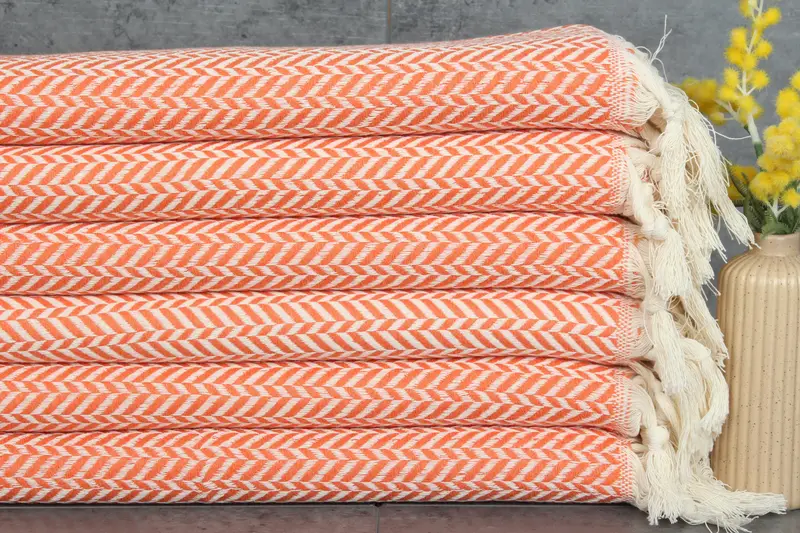 Turkish towels are characterized by their 100% organic Turkish cotton, ensuring enhanced absorbency and durability. Each towel weighs 100 grams and measures 18x36 inches or 45x90 centimeters, with tolerances of 1-2.5 centimeters in hand-weaving. Pre-shrunk and ready for use, these towels require separate washing for the first 2-3 cycles, then can be washed with other laundry at 30-40 degrees Celsius with low cycles, optionally dried in a dryer but best hung to extend their lifespan.