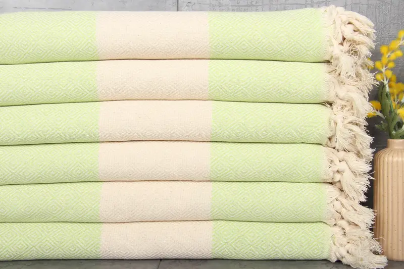 Characterized by their luxurious fiber composition, these towels are 100% organic Turkish cotton, naturally dyed, ensuring superior quality and eco-friendliness. These towels measure 40x71 inches or 100x180 centimeters, with a weight of 376 grams, and are produced through hand-weaving, resulting in a tolerance of 1-2.5 centimeters. Ensuring pre-shrunk status post initial washes, these towels offer customization options for embroidery, with expedited shipping available within 2-6 days depending on the region.