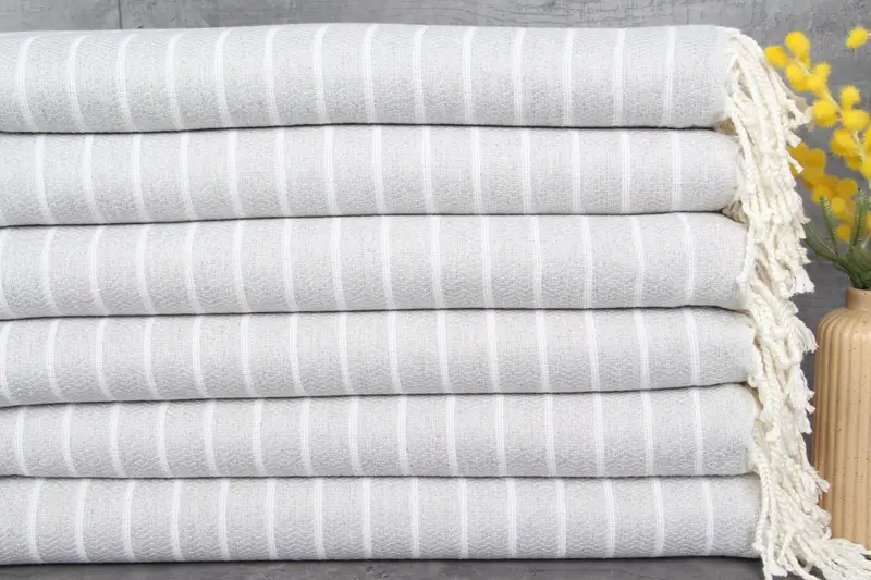 Turkish Towels are crafted from 100% organic Turkish cotton, ensuring natural dyes and a high level of absorbency. Resulting in, each piece measures 40x71 inches or 100x180 centimeters, weighing approximately 300 grams, with slight tolerances of 1-2.5cm due to hand-weaving techniques. Embroidery customization is available, enhancing personalization, alongside pre-shrunk towels to maintain consistent sizing. Orders benefit from expedited shipping options, with estimated delivery times varying by region, and a hassle-free return policy is in plac...