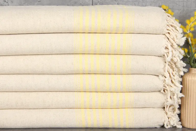 Turkish cotton towels are characterized by their %100 organic cotton construction, ensuring superior absorbency and durability. Each towel, measuring 40x67 inches or 100x170 centimeters, weighs 320 grams, resulting in a lightweight yet robust textile. The fiber composition allows hand-weaving tolerances within 1-2.5 centimeters.